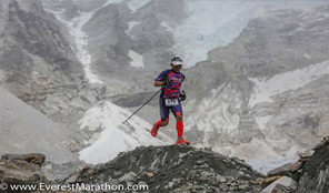 - Participants of the Tenzing Hillary Everest Marathon begin the race from Gorapshep ( 5200 meter) near to Everest Base Camp on Thursday, May 29, 2014. The Tenzing Hillary Everest Marathon Everest Marathon is the most challenging and worldās highest marathon in the world, itās started from near the famous Khumbu Ice Fall at Everest Base Camp (5,364 meters above sea level) and the finish was at Namche Bazar (3,440 meters above sea level). Due to the heavy snowfall the starting point was changed in concerned with the safety of the runners. Nepali athlete Sudip Kulung 26 clinched the title of the 12th Tenzing Hillary Everest Marathon completing 42.19 km race in 3 hour 52 minute 9 second on Thursday as Nepali athlete continued their dominance in the highest altitude marathon claiming all top ten positions.