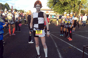 According to Lee from Travelling Fit the bus ride from Bordeaux to Pauillac may have set a new Travelling Fit record with 3 people being sick at one time. I sat next to Peta on the ride and she said that I looked pretty ill as well but that was just the face paint. After just over an hour and two stops along the way, we arrived at Pauillac to see other runners heading to the start in various costumes.